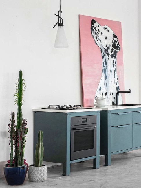 Petroleumblå är i det här inlägget blå med en twist. Det är inte alla som uppskattar den klara blå tonen i sina hem. Det finns säkert olika anledningar till det och en anledning kan till exempel vara att man inte tycker att det passar så bra med svart, vilket ju ofta förekommer som accenter i de flesta hem. Om så är fallet kan faktiskt petroleumblå vara ett alternativ eftersom den smälter in i andra färger lite bättre och kontraster även just svart som accent lite mer harmoniskt. Färgen är ändå relativt naturnära och den kan dominera hela väggar på flera rum i fil utan att det blir för mycket. Här i bild från @jwrenders.studio, vackert inramat med massiva trälister och golvsocklar. Dessutom, är färgen helt ljuvlig att mixa med andra kulörer, tex. rosa för den djärva som i bilden till höger från @ad_germany.